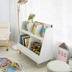 Bibliothèque Étagère à Livres Enfants Étagère De Rangement Jouets Pour Enfants Porte-revues 5 Compartiments Ouverts,SoBuy® KMB19-W