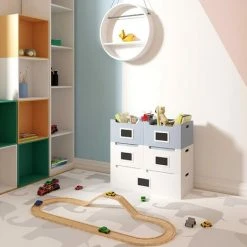 WOLTU Boîtes De Rangement En MDF Pour Enfents. Blanc Et Gris
