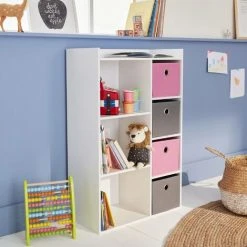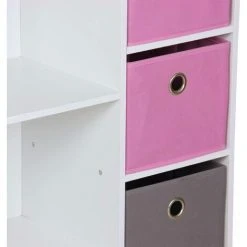 Rangez facilement la chambre de votre enfant avec ce meuble qui peut accueillir vĂŞtements, livres ou jouets. Les 2 paniers gris et les 2 paniers roses apportent une touche de couleur Ă l’ensemble. Vos enfants pourront facilement manipuler les paniers en tissu qui sont lĂ©gers. Le meuble est Ă la hauteur de votre enfant, il pourra facilement y ranger ses petites affaires. Ce meuble au design sobre est parfait pour une chambre d’enfant ou pour une salle de jeux. <br/>Compartiments : 7