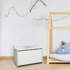 Ne laissez plus les affaires de votre enfant trainer partout dans la maison. Ce coffre pour enfant Ă©quipĂ© de poignĂ©es est dotĂ© d’une belle capacitĂ© de rangement, et est sublimĂ© par un motif Ă©toilĂ© du plus bel effet.