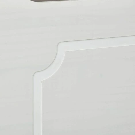 La finition vernis blanc laisse apparaĂ®tre le veinage du bois. Il s’agit d’une finition transparente.