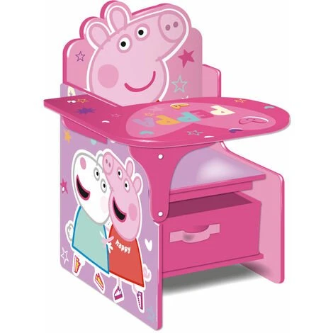 Les enfants pourront utiliser cette jolie Chaise de Rangement Bureau Peppa Pig pour s’asseoir, ranger leurs affaires, peluches et jouets ! Avec sa jolie forme, cette chaise de bureau en boiset tissu pour enfant, sera en accord parfait dans une chambre classique. Ils pourront s’asseoir sur cette chaise qui sert Ă©galement de rangement. Très pratique pour gagner de la place dans la chambre.