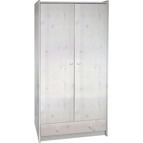 Armoire enfant en pin massif chaulé Blanc, ce meuble est moderne et élégant. Dimensions : 95 x 58 x 180 cm. Matière : Pin massif. Poids : 67.30 KG