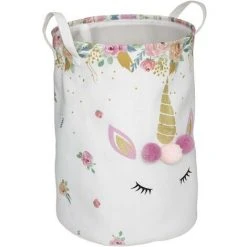 Atmosphera – Bac Ă Jouets Licorne en tissu avec pompons H 50 cm (-)