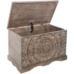 Laissez le style ethnique chic prendre possession de votre pièce avec ce coffre. Vous craquerez pour les sculptures des portes qui apporteront à ce meuble originalité et exotisme.