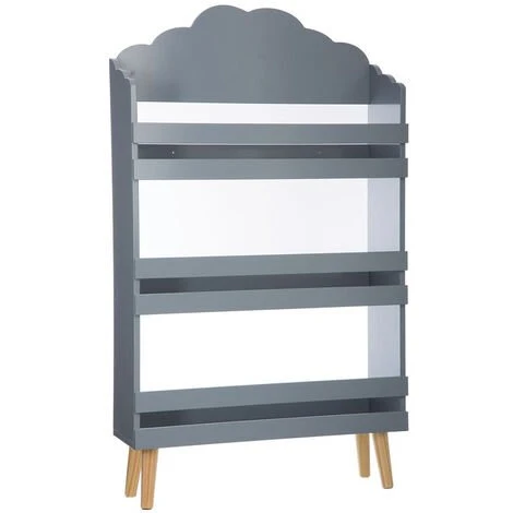 De couleur grise, le haut de cette bibliothèque empreinte la forme d’un nuage qui renforcera la dĂ©coration de sa chambre.Trois Ă©tagères aux lignes douces et dĂ©co sont prĂ©sentes afin d’exposer tous ses livres.