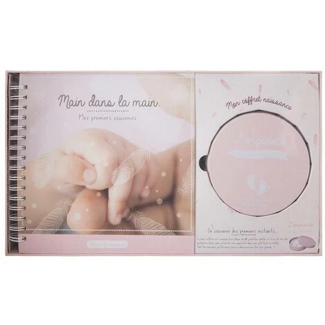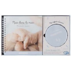 Un coffret composĂ© d’un album photo et d’un kit empreintes pour conserver les souvenirs de bĂ©bĂ©.