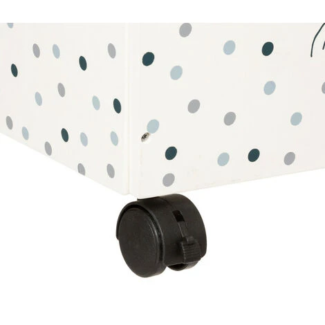Conçu en fibres de bois et pourvu de poignées, ce coffre de rangement reste pratique pour les enfants : il est équipé de quatre roulettes permettant de le déplacer facilement.