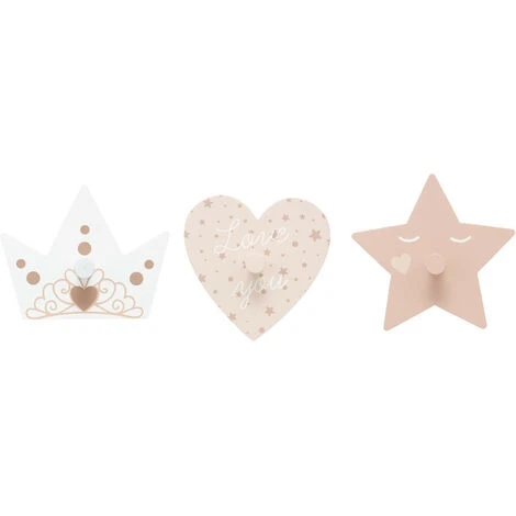 Atmosphera – Set de 3 Patères dĂ©co Princesse en Bois pour chambre enfant (-)
