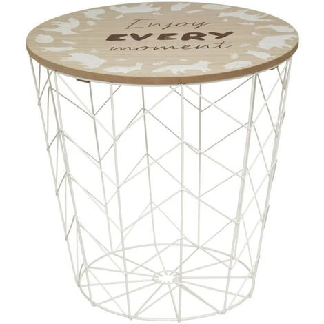 Atmosphera – Table Rangement en MĂ©tal Blanc et Bois pour chambre d’enfant D. 37 x H. 38 cm (-)