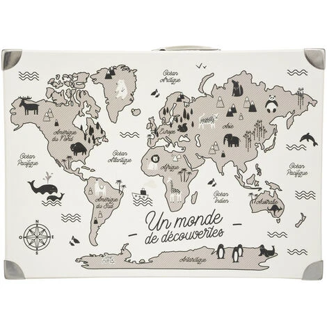 Atmosphera – Valisette de rangement en carton dĂ©co Monde L 38 cm (-)