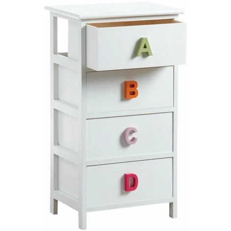 - 4 tiroirs de rangement avec poignées multicolores alphabet