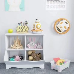 Avec 4 compartiments de rangement ouverts, il peut non seulement ranger des livres et des manuels pour enfants, mais aussi organiser des Lego et des jouets en peluche.
