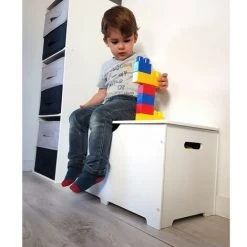 Les enfants pourront utiliser ce joli coffre Ă jouet blanc pour ranger leurs affaires, peluches et jouets !