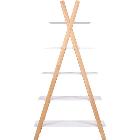 Un style plutĂ´t scandinave pour cette bibliothèque en pin massif qui mĂŞle une structure en pin naturel Ă des Ă©tagères en pin peint blanc. Une allure de tipi, comme son nom l’indique, qui la rend plus accessible dans une chambre d’enfant. Ses 5 Ă©tagères en escalier leur permettront d’y dĂ©poser jeux, jouets et livres. Dimensions : H 177 x L 85 x P 39 cm. Matière : pin massif. Finition : blanc.