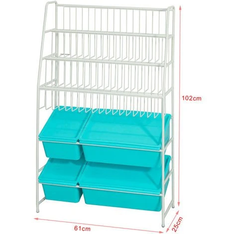 SoBuy® KMB07-B 2 en 1 : Bibliothèque + Coffre de rangement Étagère Ă Livres pour Enfants Porte-Revues Étagère de Rangement Jouets Cette Ă©tagère de livre avec design simple et moderne est idĂ©ale pour se mettre dans les chambres d’enfants, salon, bureau, Ă©cole maternelle, etc. Pratique et astucieuse, cette bibliothèque est conçue pour les enfants afin qu’ils soient autonomes dans leur rangement avec ses Ă©tagères pour les livres . Une merveilleuse façon pour les enfants de bien ranger leurs livres et jouets. Les 3 Ă©tagères Ă Livres permettent aux enfants de bien voir les livres afin de choisir facilement ce qu’ils veulent lire et de les ranger rapidement après la lecture. Les 4 boĂ®te de rangement situĂ©es en-dessous des Ă©tagères offrent une grande capacitĂ© de rangement pour les jouets. Attention: Ne convient pas aux enfants de moins de 3 ans. Ă€ utiliser sous la surveillance d’un adulte. CaractĂ©ristiques : – Matière: mĂ©tal finition peinture, coffre en PP plastique. – Dimensions: L61xP25xH102cm. – CapacitĂ© de charge: 50kg. – Poids de l’envoi : 10kg. Cet article est livrĂ© sans Ă©lĂ©ments dĂ©coratifs des photos. Avec la notice de montage illustrĂ©e et les pièces numĂ©rotĂ©es, le montage est facile. Facture fournie.