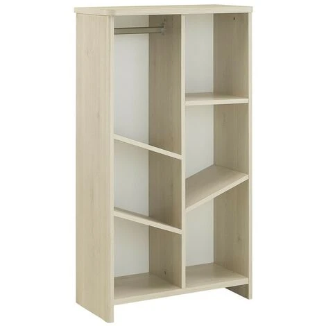 - DotĂ©e d’une tringle de penderie et d’une Ă©tagère plane vous pourrez suspendre les vĂŞtements de bĂ©bĂ© et ranger ses affaires facilement. C’est pourquoi la bibliothèque est Ă©galement munie de trois tablettes obliques qui, comme elles ressemblent Ă des branches, donnent Ă la bibliothèque bĂ©bĂ© Sacha cette similitude avec un arbre.