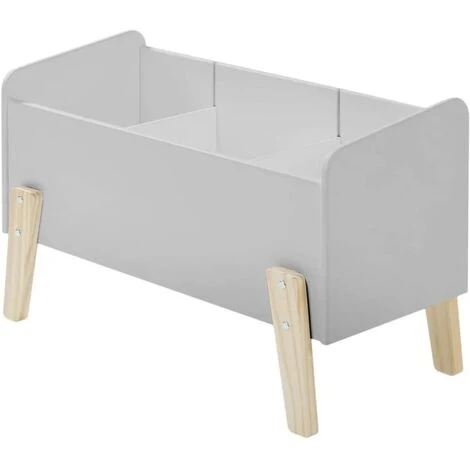 Le coffre à jouets est fabriqué en MDF laqué gris en combinaison avec des pieds en pin massif et possède des bords arrondis. Avec son style scandinave, ce joli coffre apportera style et fonctionnalité à la chambre de votre enfant.
