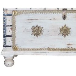 Coffre de rangement en bois de manguier coloris blanc vieilli avec des détails en bronze. Livré monté. Dimensions : longueur 100 x profondeur 40 x hauteur 57 cmMatière : bois de manguier Coloris : blanc vieilliVolume : 0,23 m³ Poids : 26 KG