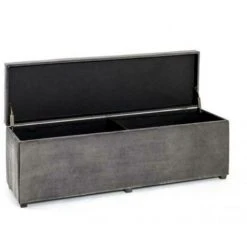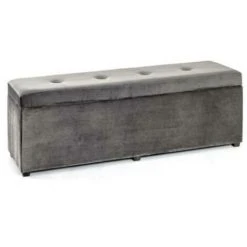 Coffre de rangement en MDF recouvert velours gris, assise rembourré et rabattable. Dimensions : L 118 x P 35 x H 42 cmMatière : MDFRevêtement : velours Coloris : gris
