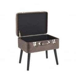 Coffre de rangement en MDF recouvert avec tissu velours couleur taupe, assise rembourrée et rabattable, pieds en bois de pin laqué noir. Dimensions : L 51 x P 37 x H 47 cmMatière : métal, velours, bois de pinColoris : taupe