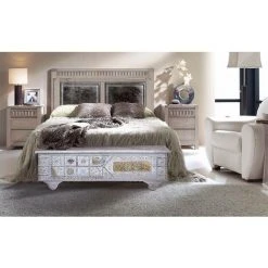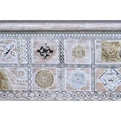 Coffre de rangement en bois de manguier coloris blanc vieilli avec des détails en bronze. Livré monté. Dimensions : longueur 145 x profondeur 40 x hauteur 45 cmMatière : bois de manguier Coloris : blanc vieilliVolume : 0,26 m³ Poids : 20 KG