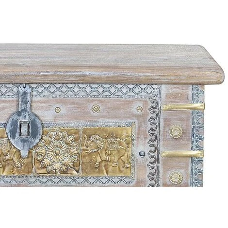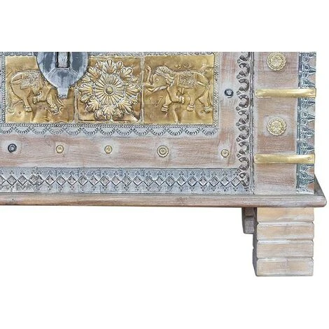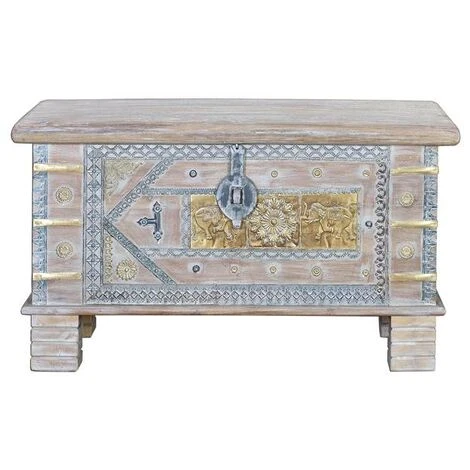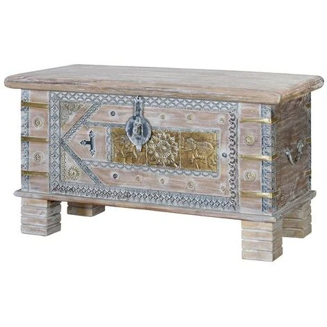 Coffre de rangement en bois de manguier coloris blanc vieilli avec des détails en bronze. Livré monté. Dimensions : longueur 80 x profondeur 40 x hauteur 45 cmMatière : bois de manguier Coloris : blanc vieilliVolume : 0,15 m³ Poids : 16 KG