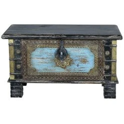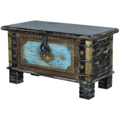 Coffre de rangement en bois de manguier coloris noir vieilli avec des détails en bronze. Livré monté. Dimensions : longueur 80 x profondeur 40 x hauteur 45 cmMatière : bois de manguier Coloris : noir vieilli Volume : 0,15 m³ Poids : 16 KG