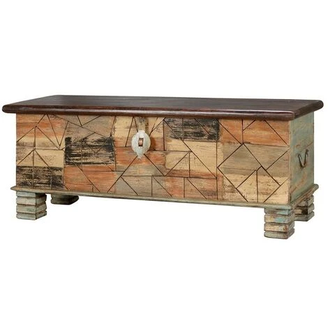 Coffre de rangement en bois manguier. Il garantira une grande capacité de rangement. Livré monté. Dimensions : longueur 116 x profondeur 40 x hauteur 46 cmMatière : bois de manguierColoris : multicolore Volume : 0,21 m³Poids : 24 KG