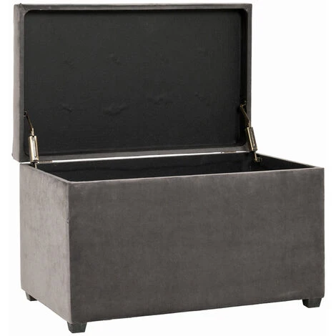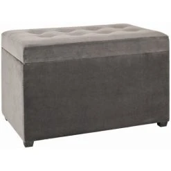 Coffre de rangement en MDF avec tissu en velours gris, assise rembourrée et couvercle rabattable. Dimensions : L 65 x P 40 x H 42 cm. Matière : MDF / tissus textiles. Couleur : gris. Poids : 9.20 kg