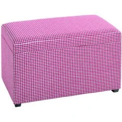 Coffre de rangement en MDF et tissu textile coloris rouge et blanc (pied-de-poule)Assise rembourré et rabattable.Dimensions : Longueur 65 x Hauteur 42 x Profondeur 40 cmMatière : MDF, tissu synthétique aspect cuirCouleur : rouge-blancPoids : 8 kg