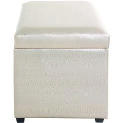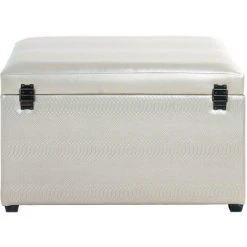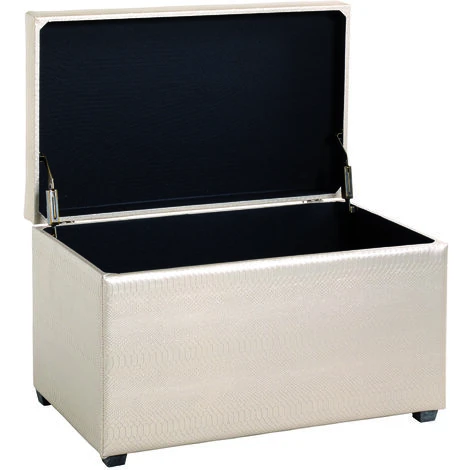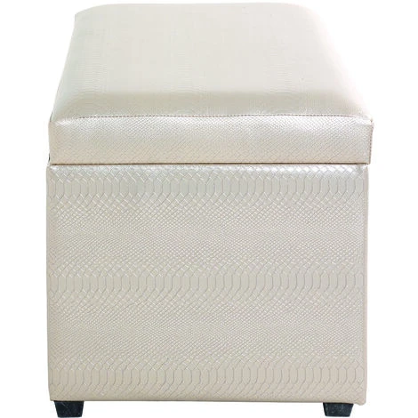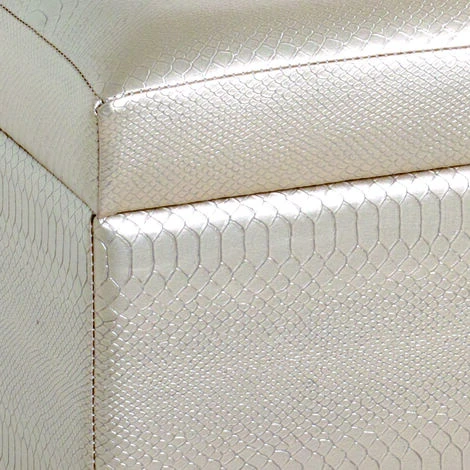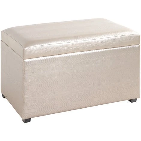 Coffre de rangement en MDF et tissu avec simili cuir en couleur or mat (motif snake)Assise rembourré et rabattable.Dimensions : Longueur 65 x Hauteur 42 x Profondeur 40 cmMatière : MDF, tissu synthétique aspect cuirCouleur : orPoids : 8 kg
