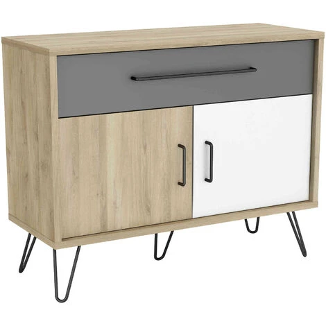 – Structure : panneaux de particules revĂŞtus d’un papier dĂ©cor imitation chĂŞne brossĂ©