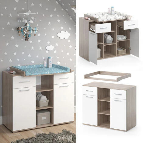 Des compartiments pratiques et ouverts vous sont proposés afin que vous ayez tous les articles de soins nécessaires pour bébé à portée de main. Les tiroirs fermés et les compartiments avec portes battantes permettent de maintenir l’ordre nécessaire dans la chambre de votre enfant.