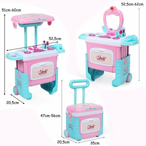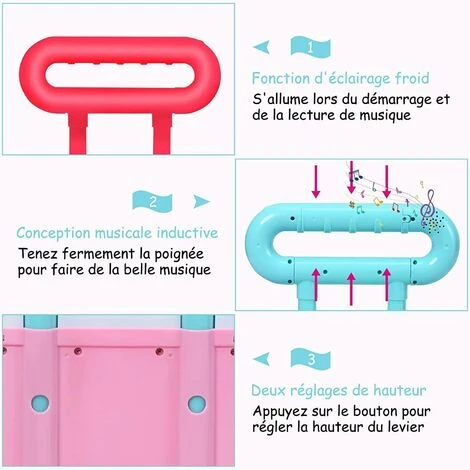 Nos jeux d’imitation pliables amuseront vos enfants longtemps en les accompagnant dans leur enfance! Le kit de maquillage peut non seulement servir de table de jeu mais Ă©galement se convertir en une valise Ă roulettes. La hauteur de la table de travail et le levier peuvent ĂȘtre rĂ©glĂ©s comme vous le souhaitez. Le jeu d’imitation permet aux enfants d’interagir avec leurs amis, dĂ©veloppant ainsi leurs relations sociales. Ils disposent de nombreux accessoires de base qui leur permettent d’imiter des sessions de maquillage. La conception originale de l’Ă©clairage et du son crĂ©e une expĂ©rience de jeu plus intĂ©ressante pour vos enfants. GrĂące au polypropylĂšne inodore et Ă la finition soignĂ©e du produit, vous n’aurez pas Ă vous soucier des questions de sĂ©curitĂ©. De plus, l’espace gĂ©nĂ©reux facilite le rangement tout en donnant de bonnes habitudes Ă vos enfants.