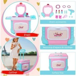 ăGrand espace de rangement:ăLe plan de jeu contient une grande boĂźte de rangement pour accueillir tous les petits accessoires, ce qui facilite l’organisation. De plus, cela encouragera votre enfant Ă ranger ses accessoires de beautĂ© ainsi quâĂ prendre de bonne habitudes de rangement.