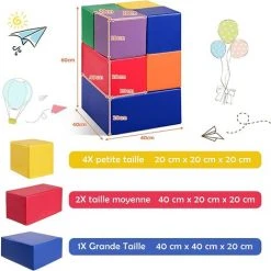 - ăUtilisation polyvalenteăce jeu de 7 piĂšces peut ĂȘtre utilisĂ© dans une chambre de bĂ©bĂ© ou un jardin d’enfants pour qu’ils s’amusent, individuellement ou Ă plusieurs. Les blocs sont empilables pour ĂȘtre rangĂ©s dans des espaces limitĂ©s sans encombrer.