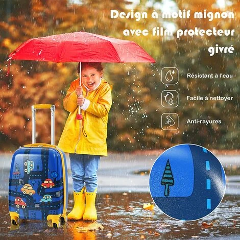 - 【Matière de haute qualité :】L’ensemble de valises pour enfants est fabriqué en matière plastique ABS de qualité supérieure, qui ne se déforme pas et est pérenne. De plus, recouverte d’un film protecteur et transparent, la surface est waterproof et facile à entretenir. Le film protecteur améliore également la résistance à l’usure et aux rayures.