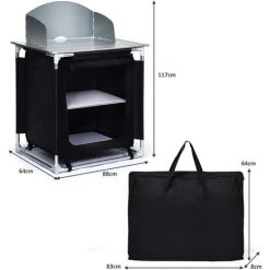 ăCuisinez nâimporte oĂčă : Fourni avec une table de cuisine Ă©quipĂ©e de protection latĂ©rale, cette meuble de camping portable est lâincontournable pour vos vacances camping, pour cuisiner plus facilement et apprĂ©cier de bons repas nâimporte quand. Parfaits pour les pique-niques, les barbecues, les soirĂ©es.