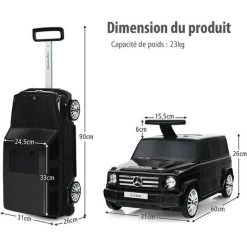 - ăAspect du vĂ©hicule tout-terrain :ăpar rapport aux autres valises, notre valise pour enfants a une apparence de voiture unique, qui est officiellement autorisĂ©e et sous licence par Mercedes Benz. Votre enfant attirera certainement l’attention et s’amusera beaucoup lorsqu’il utilisera cette valise Ă l’extĂ©rieur. Une valise Ă porter aussi cool est idĂ©ale pour les enfants de 2 Ă 6 ans.