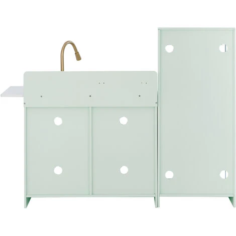 – DESIGN POLYVALENT ET STYLE – Cette superbe cuisine de jeu est finie dans une nuance menthe Ă l’eau avec une robinetterie et des poignĂ©es dorĂ©es très tendance, ce qui lui donne un look très Ă©lĂ©gant. Elle est très polyvalente et convient parfaitement dans la plupart des dĂ©cors et est le complĂ©ment parfait Ă toutes salles de jeux.