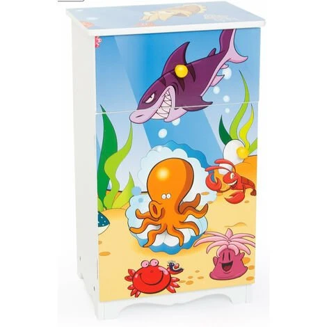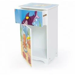 Commode d?enfants motif mer avec un tiroir et un placard de rangement.