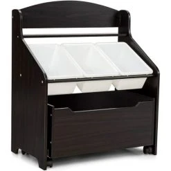 - Espace de rangement — Equipé de trois palettes en plastique qui peuvent être utilisées pour contenir quelques petits jouets. Les enfants peuvent y mettre des blocs, des puzzles, des livres d’images et des voitures. En outre, chaque palette est amovible et facile à nettoyer.