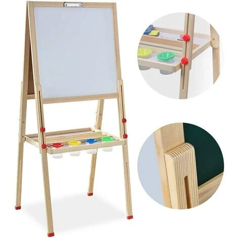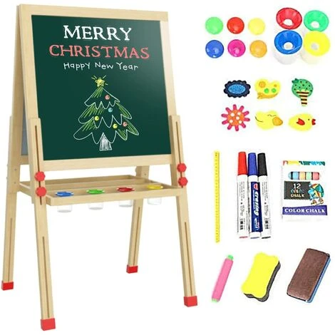 Dripex Tableau Enfant Double Face En Bois 49 X 49CM, Chevalet Enfant Multifonction Réglable En Hauteur Avec Craie, Cadeau De Jouet Educatif Créatif Pour Garçon Fille De Plus De 3 Ans