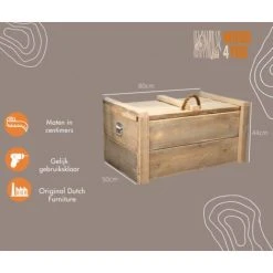 Coffre à jouets en bois robuste et pratique, idéal pour ranger les jouets des enfants qui traînent. Cette boîte de rangement a un look cool et moderne. Cela rend la boîte adaptée à n’importe quelle pièce de la maison. La boîte peut également servir de table basse et peut être utilisée, par exemple, pour ranger les couvertures polaires à la montagne pendant les mois les plus froids. La boîte est faite de bois d’échafaudage durable et robuste. Les dimensions du coffre à jouets sont de 80x50x44cm.