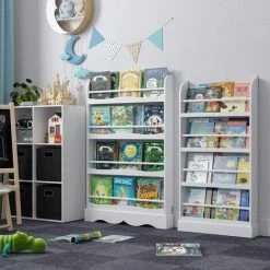 ★Matériau – La bibliothèque pour enfants est en MDF E1. Le niveau MDF garantit la sécurité et la stabilité de la bibliothèque. Dans le même temps, l’application de la peinture environnementale blanche offre une expérience à la maison plus saine et plus élégante.