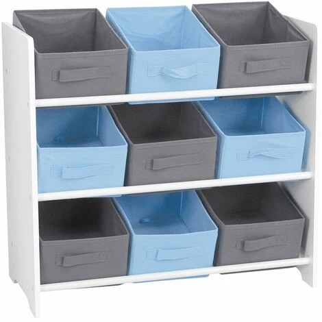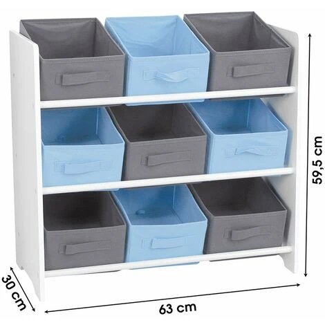 Offrez un espace de rangements original et très pratique à la chambre de votre enfant grâce au meuble 9 panières bleu gris.