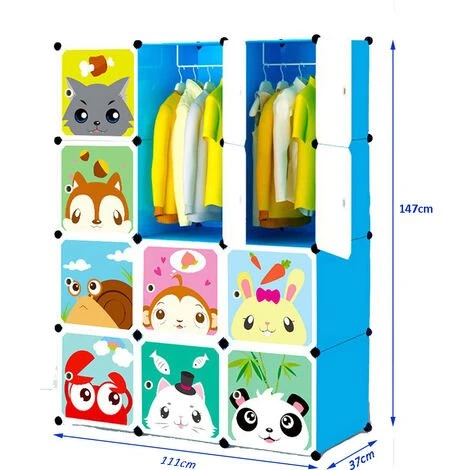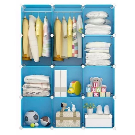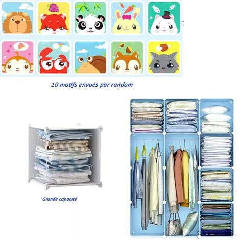 Armoires Etagères Plastiques Enfants Bleu, 12 Cubes Armoires Meubles de Rangement Pour Vêtements Chaussures Jouets Cartoon