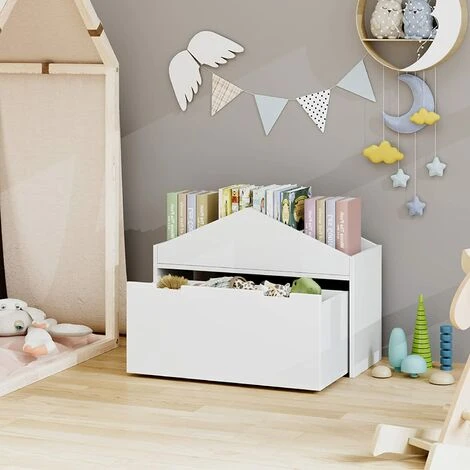 Le coffre peut organiser vos livres, la photo se trouve sur l’Ă©tagère du haut. Vos ballons de soccer, jouets, collations, etc. Ils seront organisĂ©s dans la bo?te de rangement en bas. Tout sera en ordre.