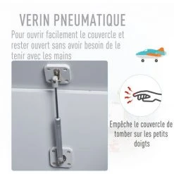 Ce joli coffre Ă jouets s’intĂ©grera parfaitement dans la chambre de votre enfant. Compact, très pratique d’utilisation grâce Ă son vĂ©rin pneumatique d’abattant, ce coffre vous sera grandement utile !
